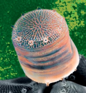 | Comment: | Thalassiosira pseudonana is an unicellular algae, a diatom. Diatoms are found in almost all aquatic enviroments in the world. They have been well studied in both their natural habitat and in laboratory settings. Diatoms grow an outer silica shell, called a frustule, that is unique to each species. The silica shell can be preserved, and fossil frustules can be seen in sedimental layers as early as the Jurassic/Cretaceous period. Marine diatoms sequester large amounts of carbon, and are an important model organism for studies into the biology of oceanic carbon sequestration. Diatoms also furnish a significant portion of the world's oxygen supply. The removal of CO2 from surface water is also of interest. |