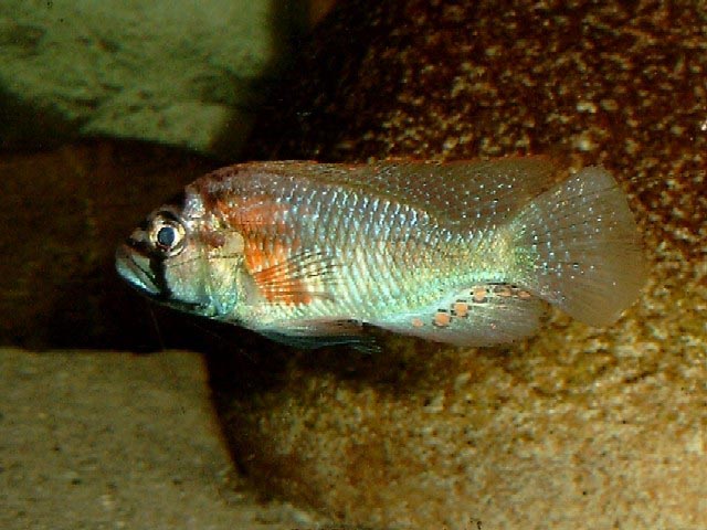 | Taxonomy: | Eukaryota | Opisthokonta | Metazoa | Eumetazoa | Bilateria | Deuterostomia | Chordata | Craniata | Vertebrata | Gnathostomata | Teleostomi | Euteleostomi | Actinopterygii | Actinopteri | Neopterygii | Teleostei | Osteoglossocephalai | Clupeocephala | Euteleosteomorpha | Neoteleostei | Eurypterygia | Ctenosquamata | Acanthomorphata | Euacanthomorphacea | Percomorphaceae | Ovalentaria | Cichlomorphae | Cichliformes | Cichlidae | African cichlids | Pseudocrenilabrinae | Haplochromini | Haplochromis |